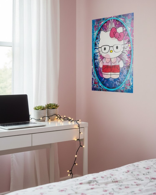 3D Lenticular Motion Poster - Cute White Kitty Red Bow Art - 30x40cm Kawaii Decor